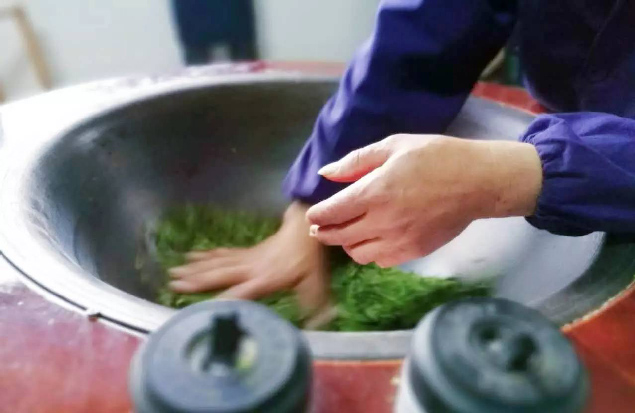 西湖龙井,一年一季,从去年谷雨,到今年春分,茶芽经过漫长寒冬的休眠,养分的积累、春雨的滋润,散发着独有的豆花香气,经历近330天漫长等待后,茶树才迎来第一次吐芽,这就是精华的“头采茶”。石老师说:西湖龙井特有的油煎蚕豆瓣儿的香味,想激发出这馥郁味道,全靠炒茶师的一双手。